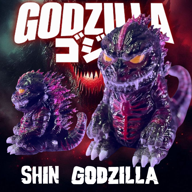 A representation of Godzilla as seen in Shin Godzilla (2016). This version features a segmented, mutation-prone design with exposed red musculature and a heavily restructured tail. Known for its evolving forms and distinct visual departure from previous iterations.