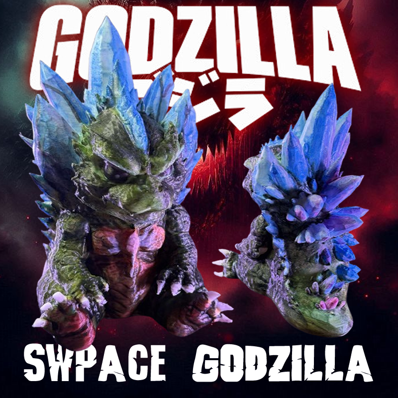 A representation of SpaceGodzilla, a cosmic mutation of Godzilla’s DNA. Characterized by crystal shoulder structures, telekinetic abilities, and extraterrestrial origin. First appeared in Godzilla vs. SpaceGodzilla (1994).